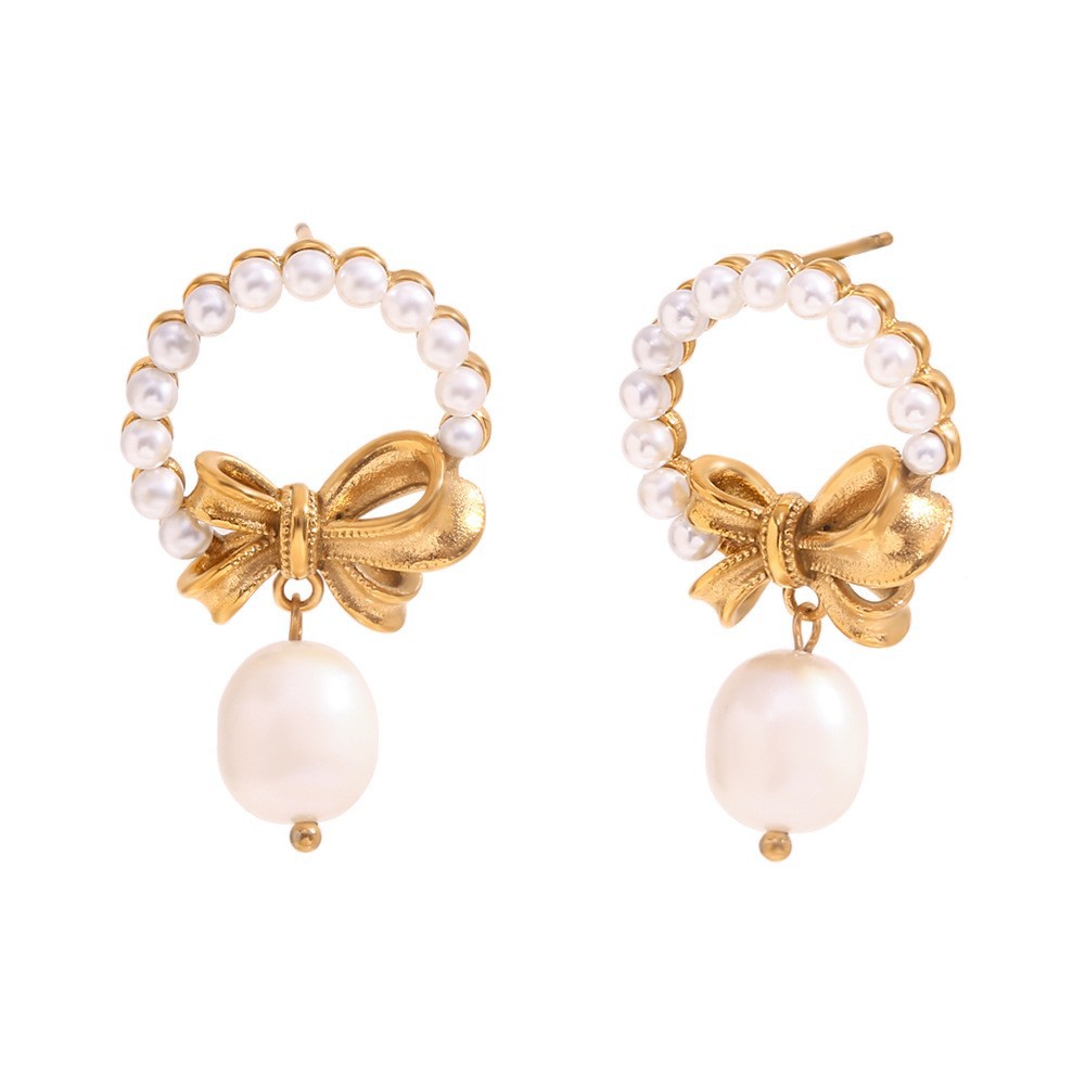Cercei cu fundițe și perle naturale de apă dulce